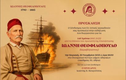 Επετειακή Εκδήλωση – 140 Χρόνια από τον θάνατο του Ιωάννη Θεοφιλόπουλου (Καραβόγιαννου) 1885-2025 Το Δ.Σ. του Συνδέσμου των εν Αττική Λαγκαδινών σας προσκαλεί στην εκδήλωση τιμής και μνήμης για τον […]