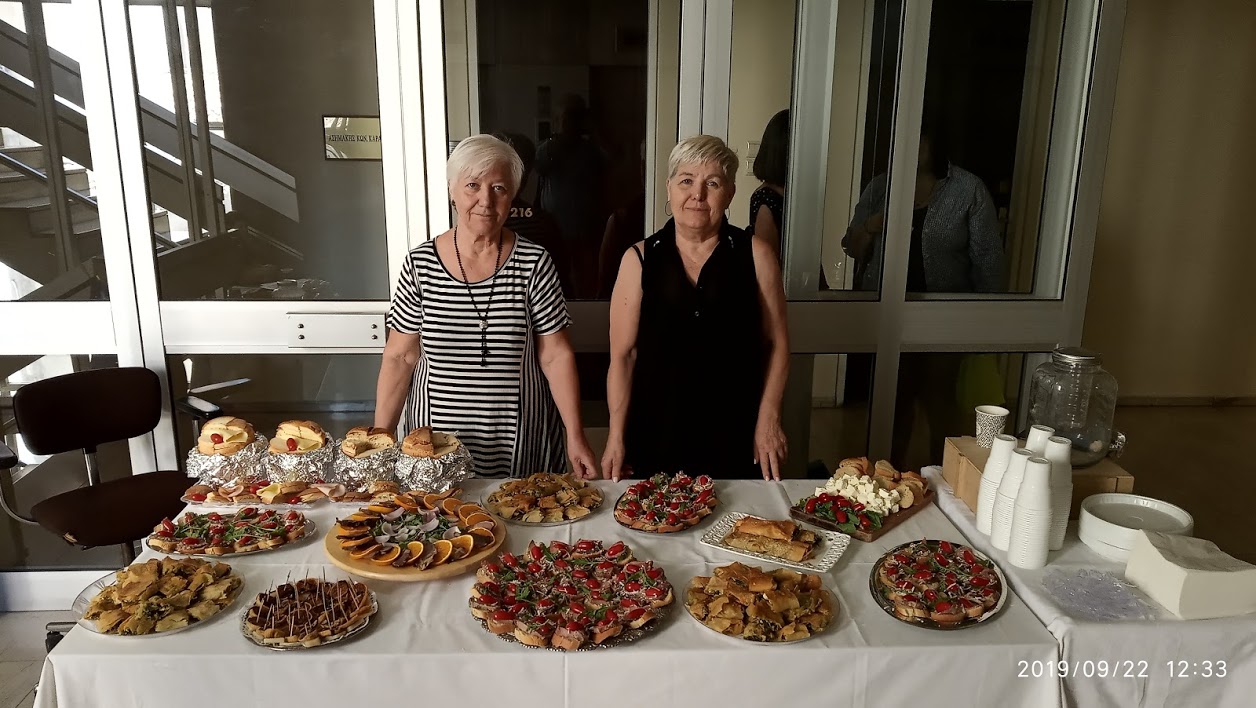 Τον σύντομο χαιρετισμό του Προέδρου του Δ.Σ. ακολούθησαν τα εδέσματα του πλούσιου buffet που επιμελήθηκαν με αγάπη οι συμπατριώτισσες μας, αδερφές, Άννα Μαναράκη και Ευαγγελία Γκαβού.